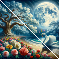 Emotional Impact: Natural imagery often triggers positive emotions, such as tranquility, joy, or nostalgia. The graceful swan, vibrant flowers, and serene lake can serve as a reminder of purity, elegance, and the simplicity of nature, offering an emotional escape from daily stress.
